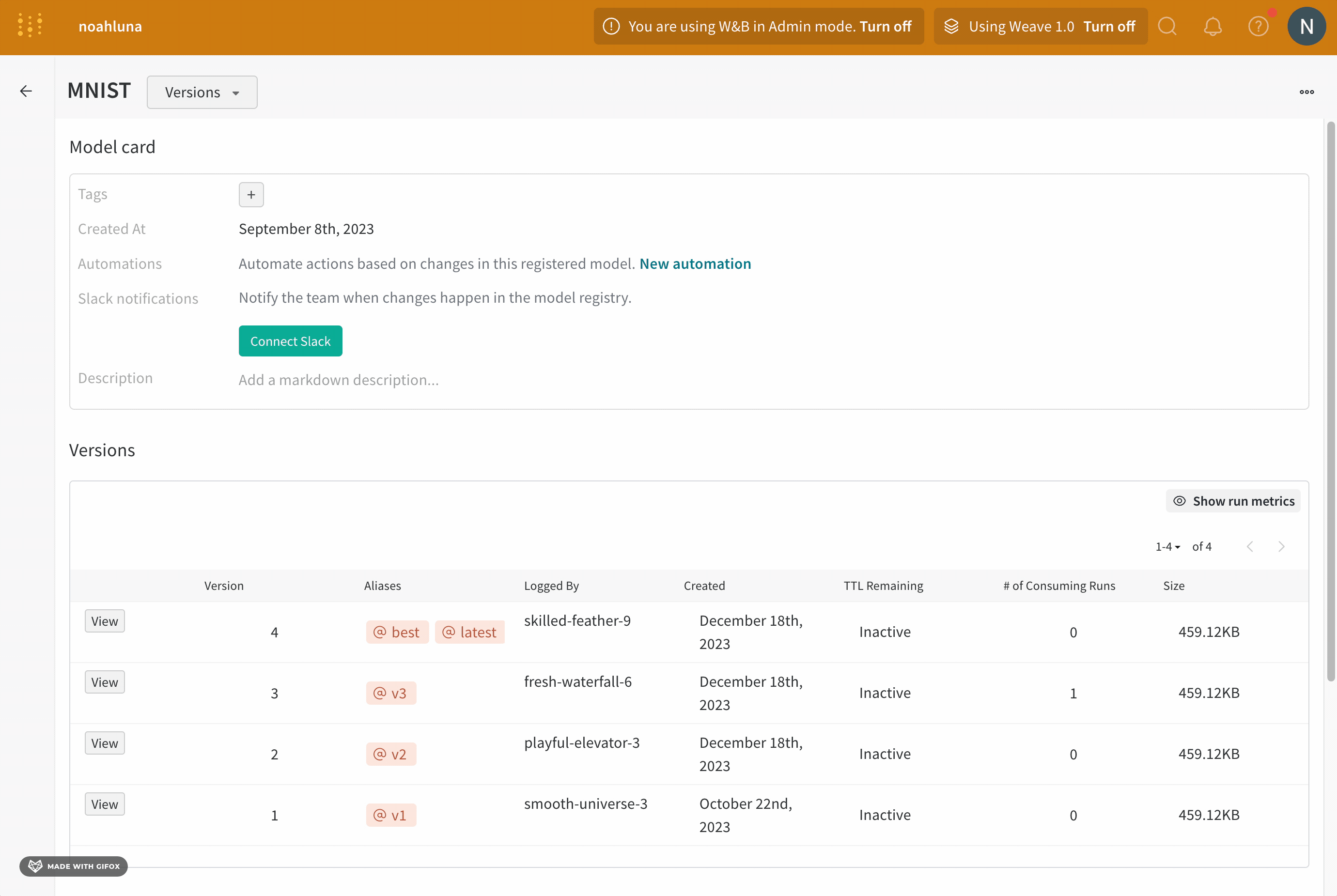 指定した名前の registered-model-name がまだ存在しない場合、W&B は登録されたモデルを作成します。