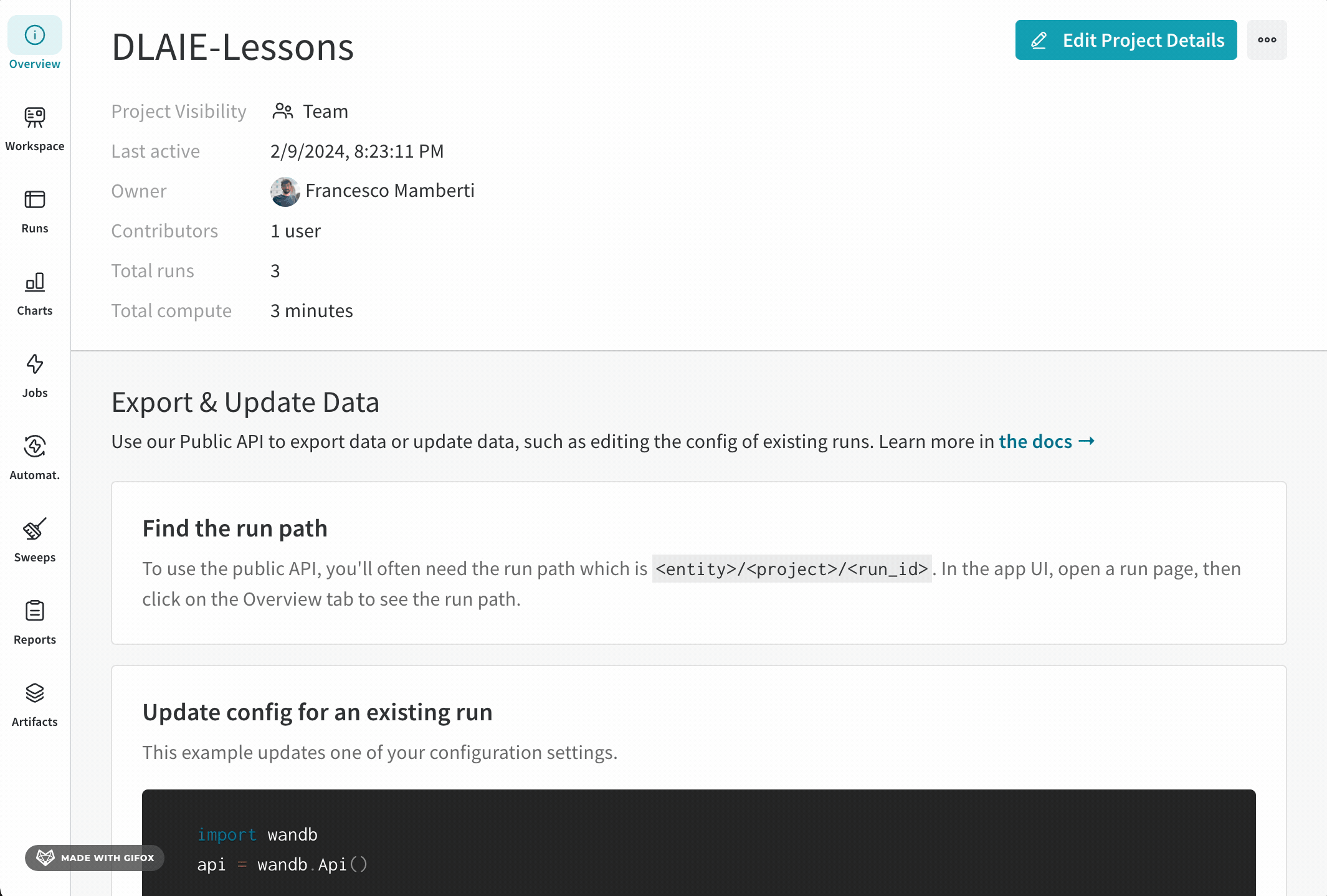 - W&B プロジェクトに移動します。