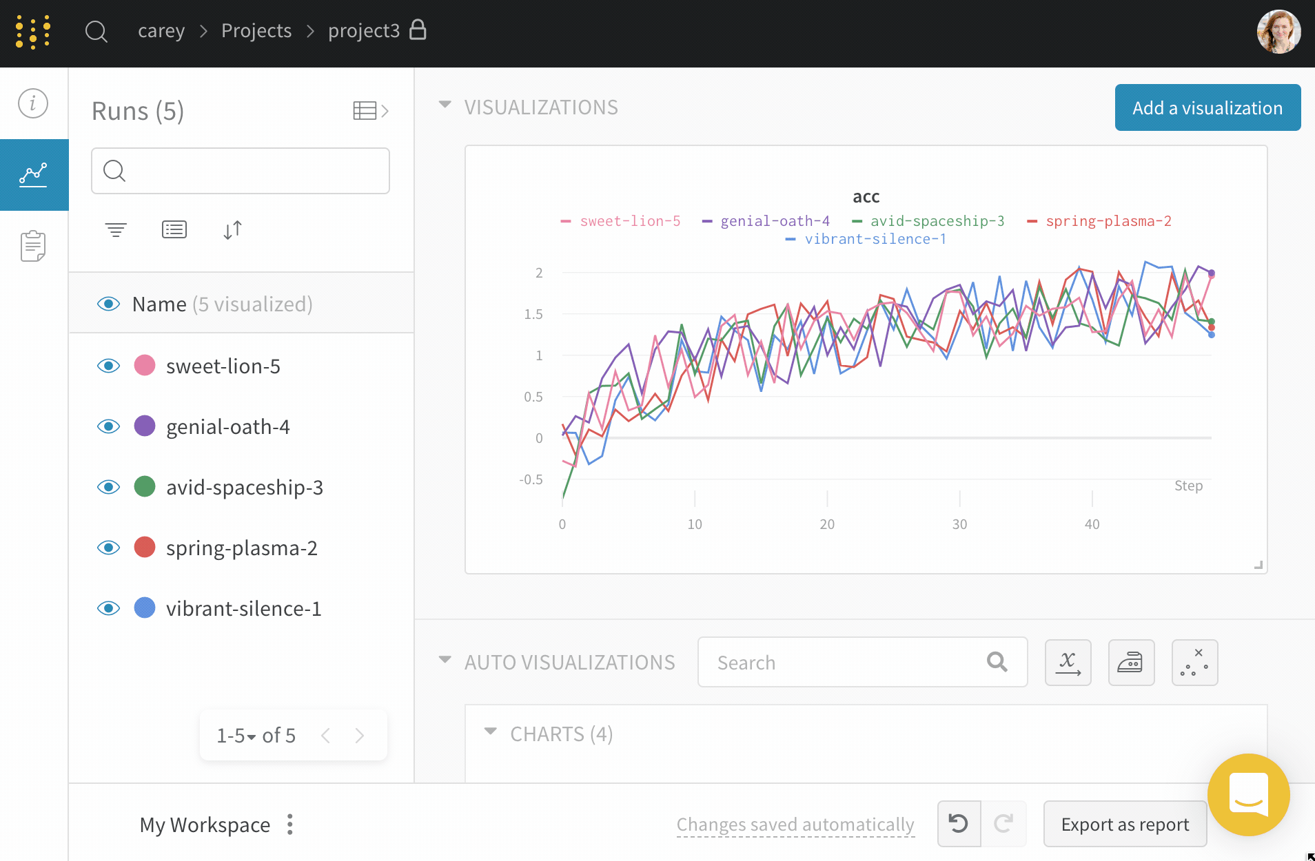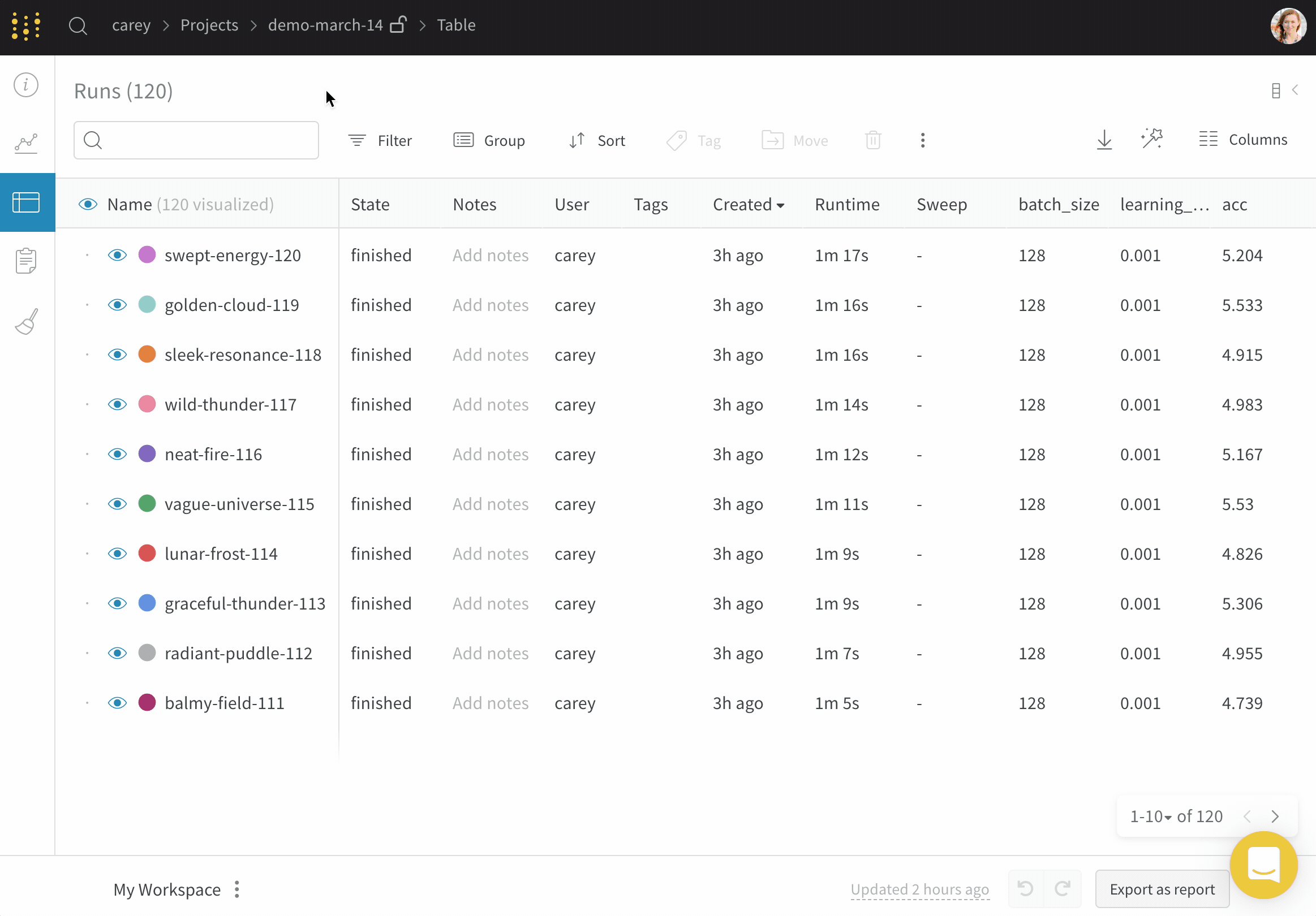 - プロジェクトのサイドバーから Runs タブを選択します。