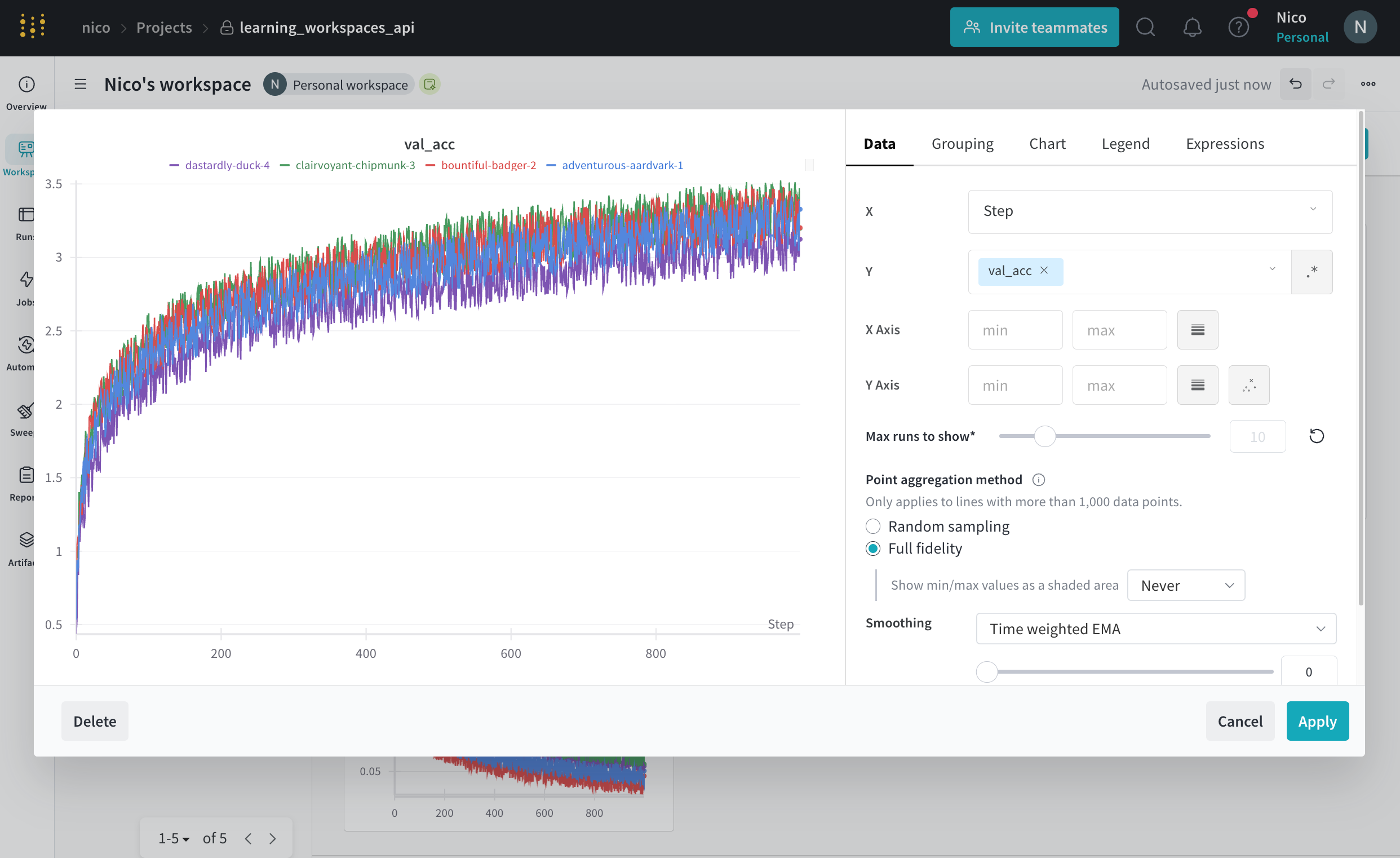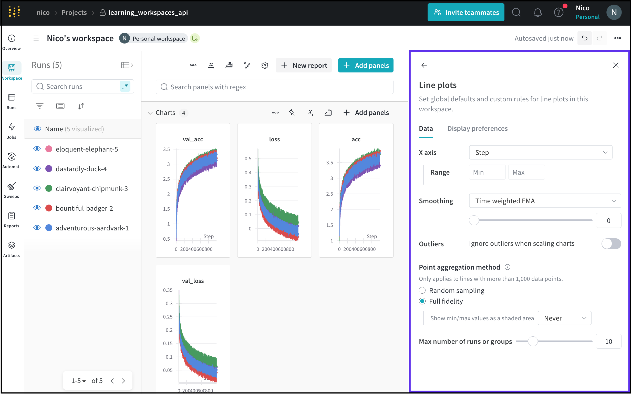 | 최대 run 또는 그룹 수 | 라인 플롯에 표시되는 run 또는 그룹 수를 제한합니다. |